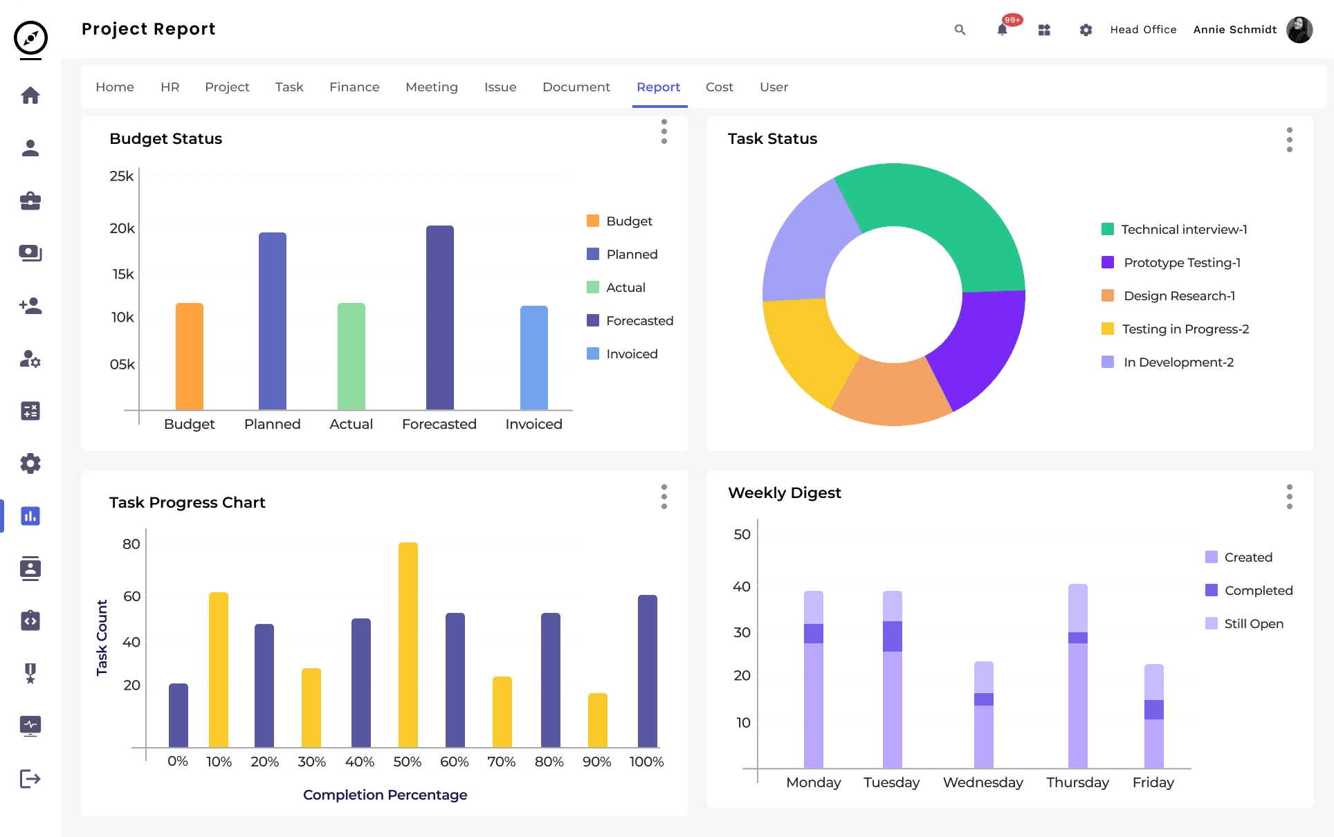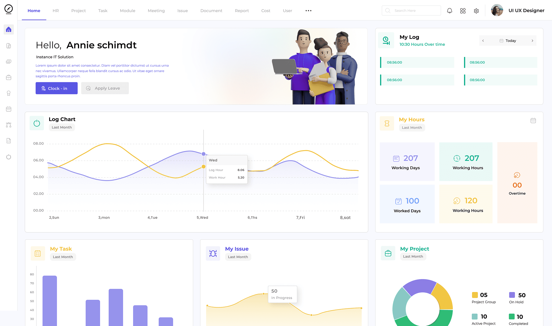 Navigation Overhaul: Simplified the platform architecture into clear, modular sections, enabling users to move seamlessly between HR, Project Management, CRM, and Reporting without friction.