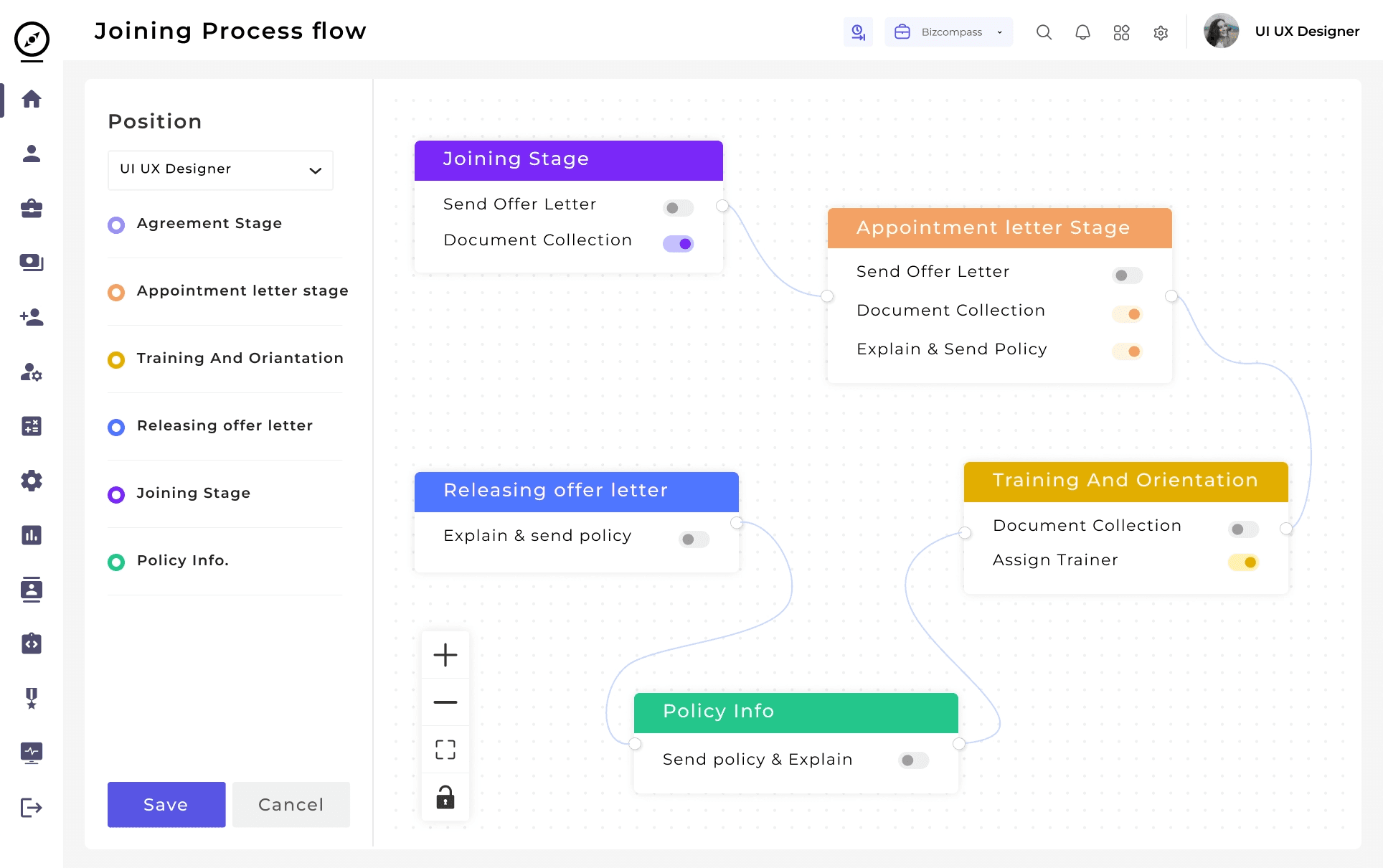 Workflow Optimization: Reduced complex multi-step processes into streamlined flows, automating recruitment, onboarding, payroll, and approvals to minimize manual effort.